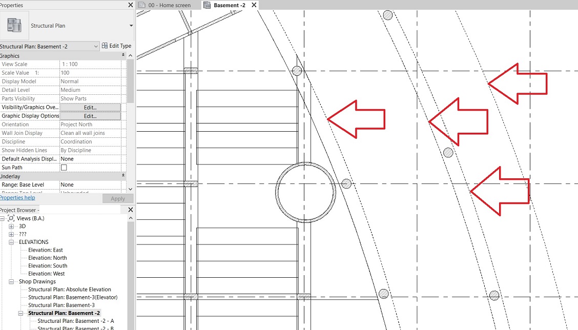 Structural framing in dashed lines in Revit floor plan view Revit