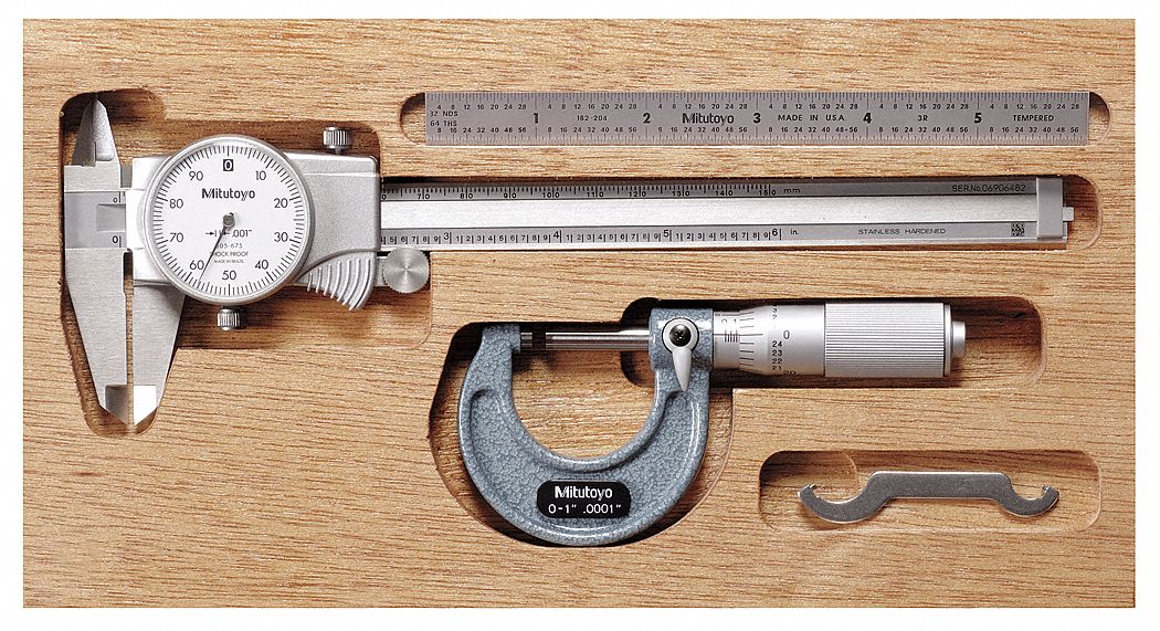 MITUTOYO Precision Measuring Tool Kit, Number of Pieces 4, Caliper Type