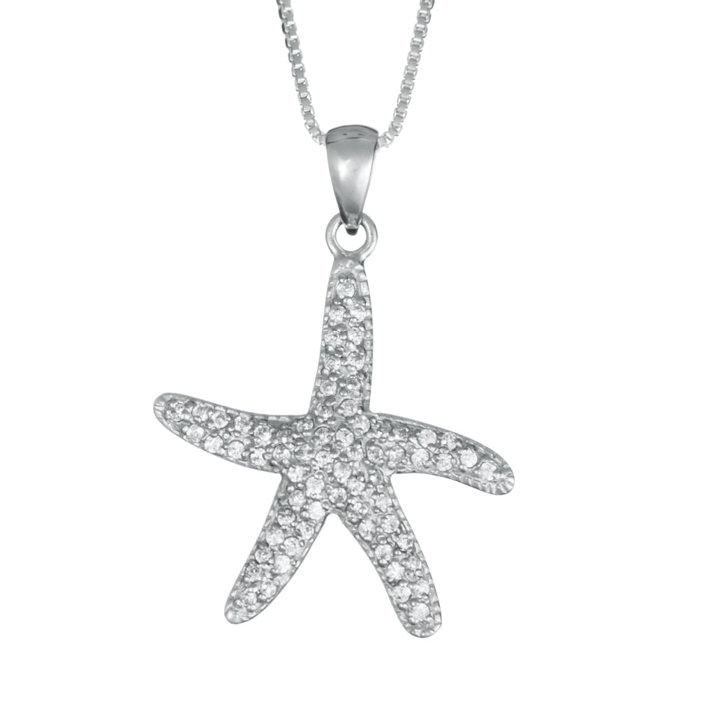 Sterling Silver Large Starfish Necklace with CZ Landing Company