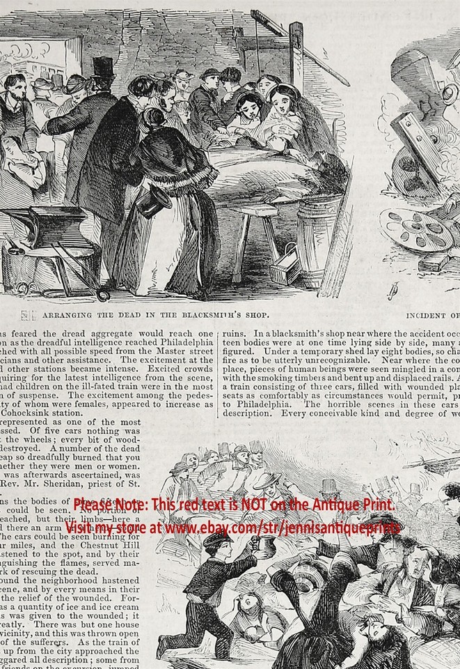 Brooklyn Heights New York City Fire, 1850s Antique Engraving Print