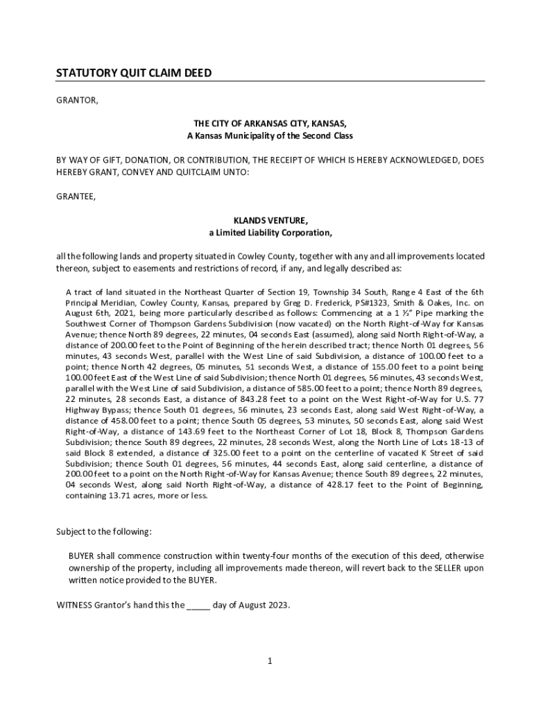 Fillable Online kansas general quit claim deed Fax Email Print pdfFiller