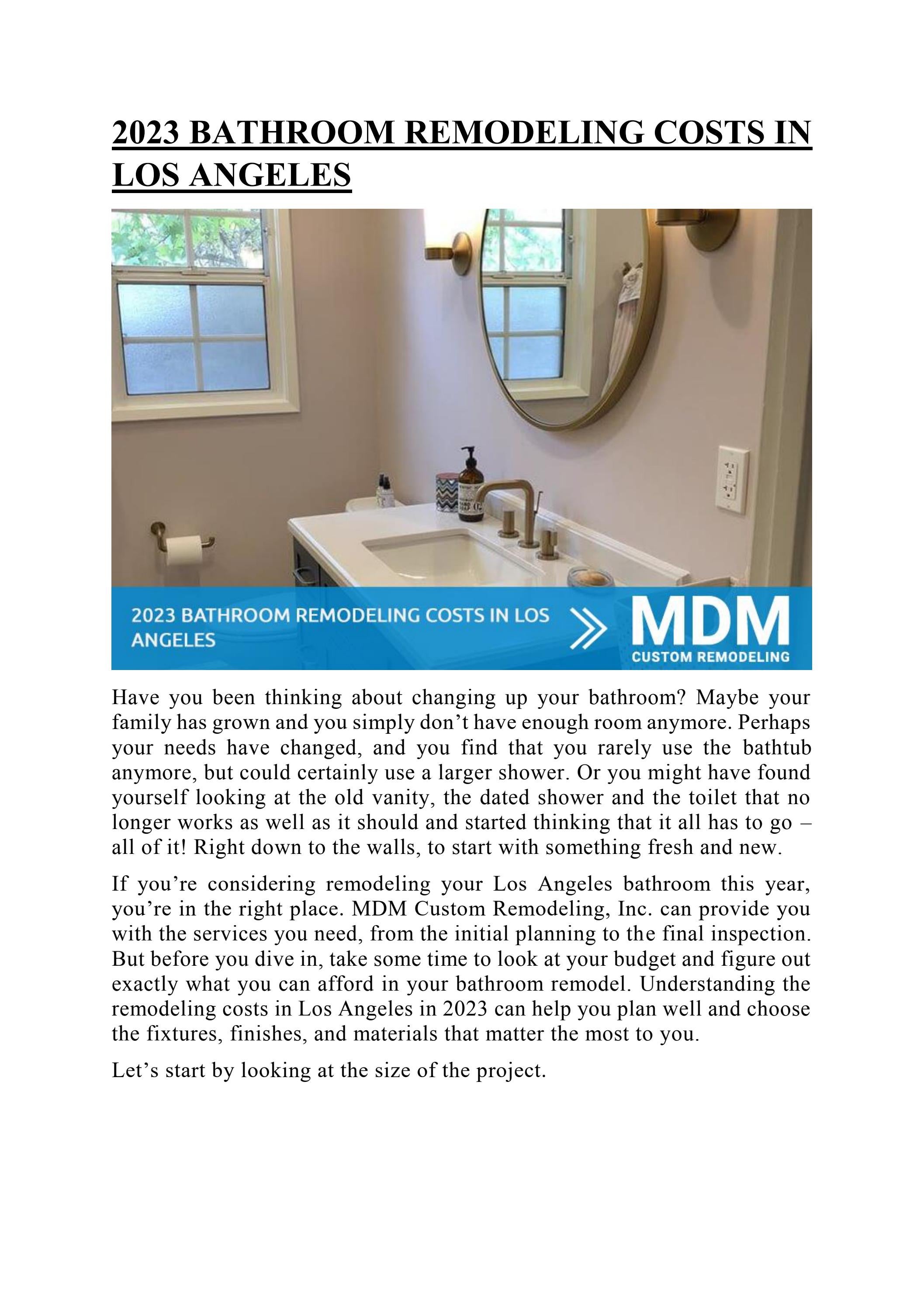 2023 BATHROOM REMODELING COSTS IN LOS ANGELES by mdm cimac Issuu