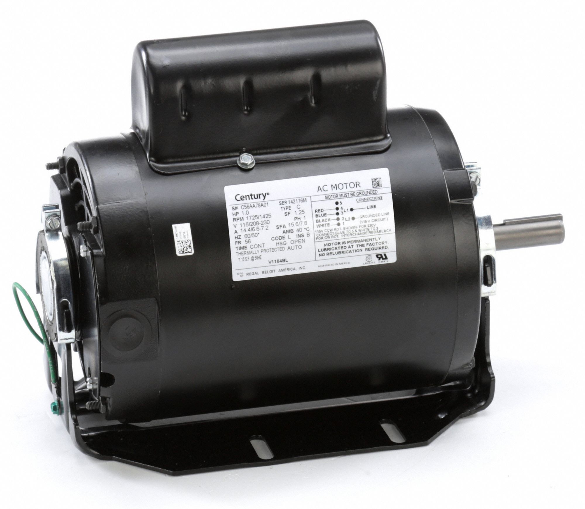 CENTURY Evaporative Cooler Motor, 1 HP, CapacitorStart, Nameplate RPM