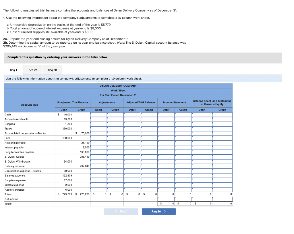 Solved The following unadjusted trial balance contains the