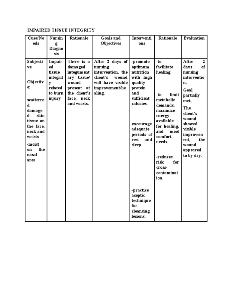 Impaired Tissue Integrity Burn Health Sciences Wellness