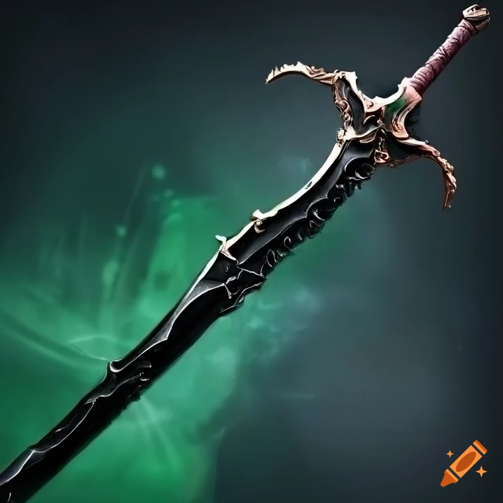 Black obsidian longsword with green tint in the blade on Craiyon