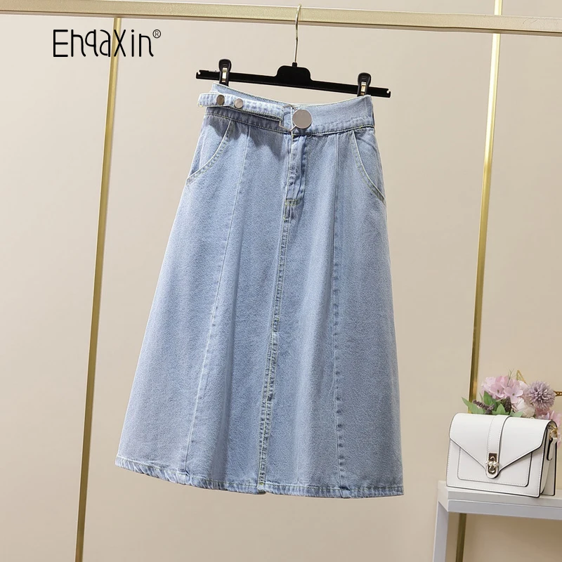 Ehqaxin Summer New Womens Denim Skirts Casual Versatile Style Button Loose Denim Skirt For