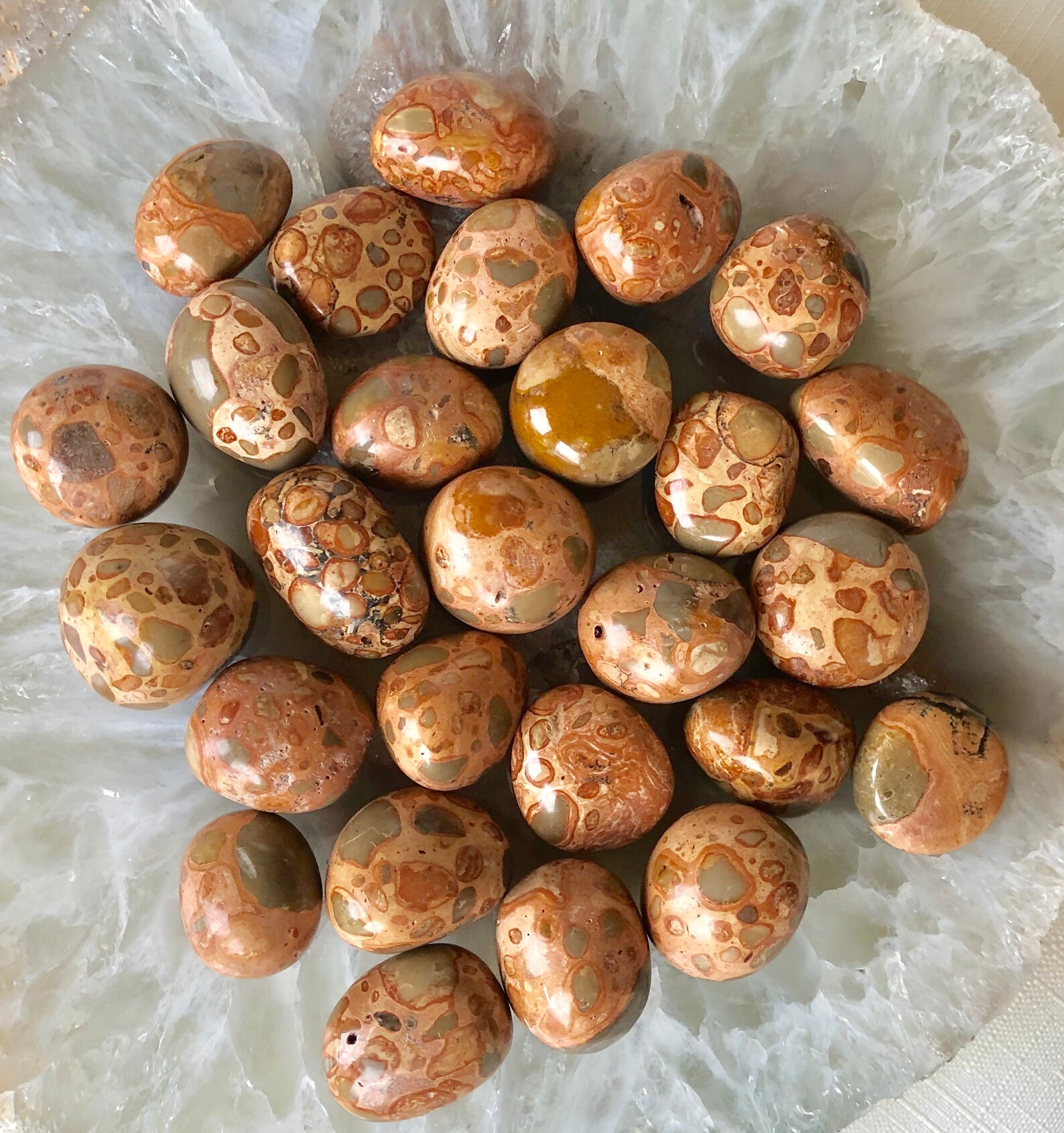 Leopard Skin Jasper Tumbled The Crystal Council Can Leopard Skin Crystal Go In Water Leopardskin jasper stone can be incorporated into crystal grids, which are arrangements of crystals used for specific intentions or manifestations. Can leopardskin jasper go in water? Yes, leopardskin jasper can go in water, though prolonged exposure may lead to discoloration or damage. How to tell a real leopardskin jasper. Cleansing method and techniques of leopard skin jasper. It is advisable. Can Leopard Skin Crystal Go In Water.
