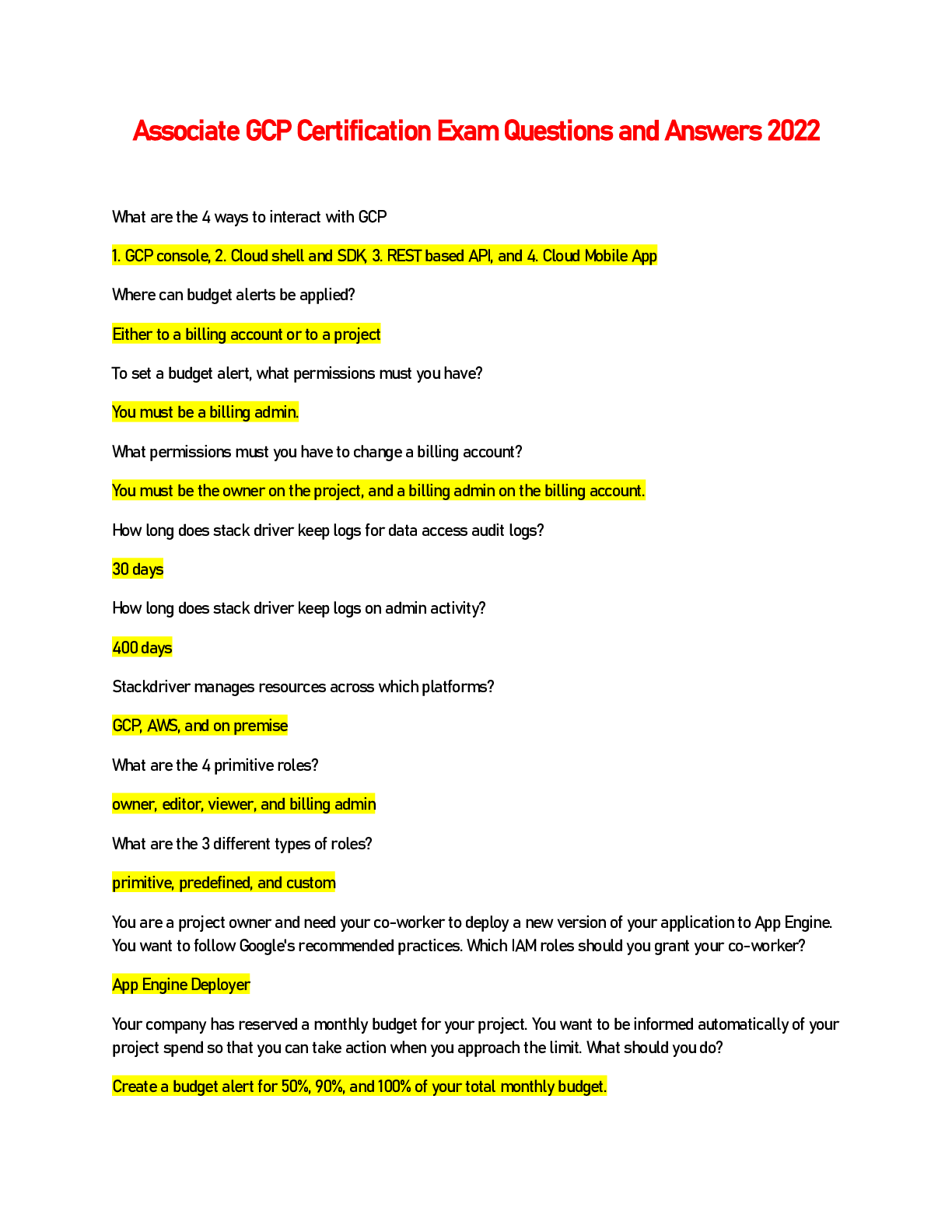 Associate GCP Certification Exam Questions and Answers 2022 Browsegrades