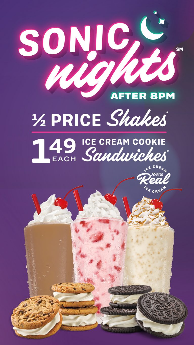 MOM Deal Sonic Nights 1/2 Price Shakes & 1.49 Ice Cream Cookie Ice Cream Specials At Sonic our new $1.99 menu features savings on a whole lineup of tasty faves. it doesn’t matter if it’s a summer hot day or a cold winter evening, you’ll be able to immerse yourself in the delicious flavor of sonic’s ice cream menu. ours has this promotion after 8 pm, and now and then will have deals on. Ice Cream Specials At Sonic.