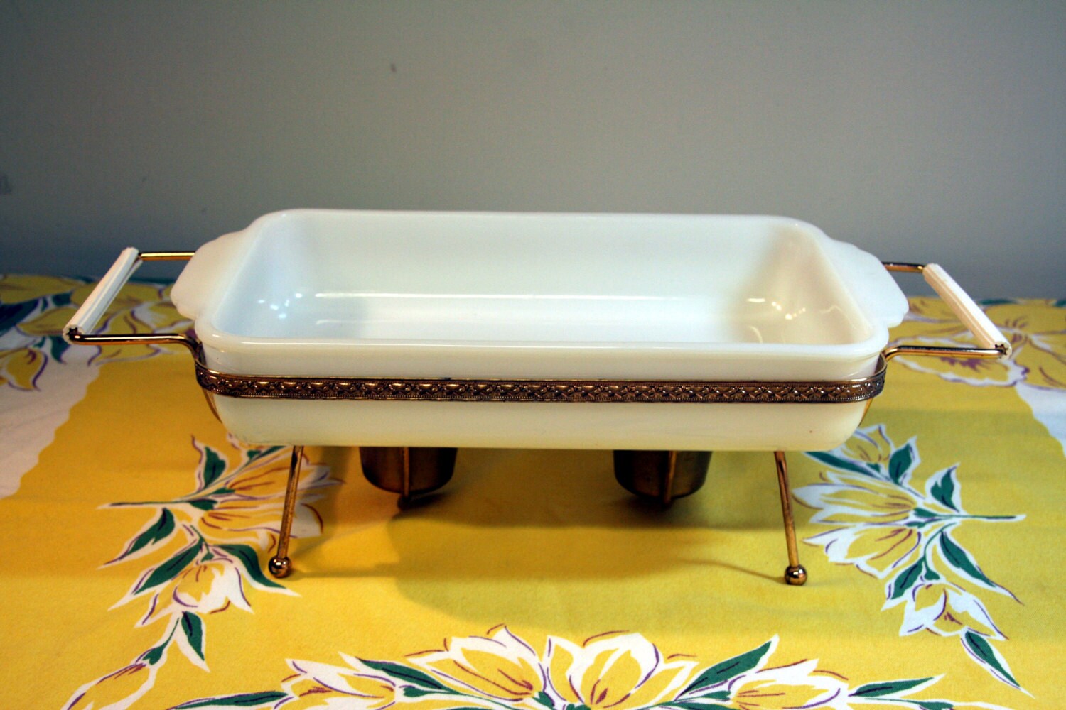 Vintage Chafing Dish Fire King Milk Glass Dish with Gold Etsy Glass Chafing Dish Fire It is used for cooking. in this video, you will learn how to safely use chafing gel as well as the dos. Induction chafing dishes and fuel chafing dishes. put the flammable materials away from the chafing dish and never attempt refueling the fuel when the fire is on. chafing dishes are hot and. we teach. Chafing Dish Fire.
