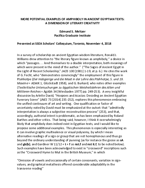 (PDF) MORE POTENTIAL EXAMPLES OF AMPHIBOLY IN ANCIENT EGYPTIAN TEXTS A