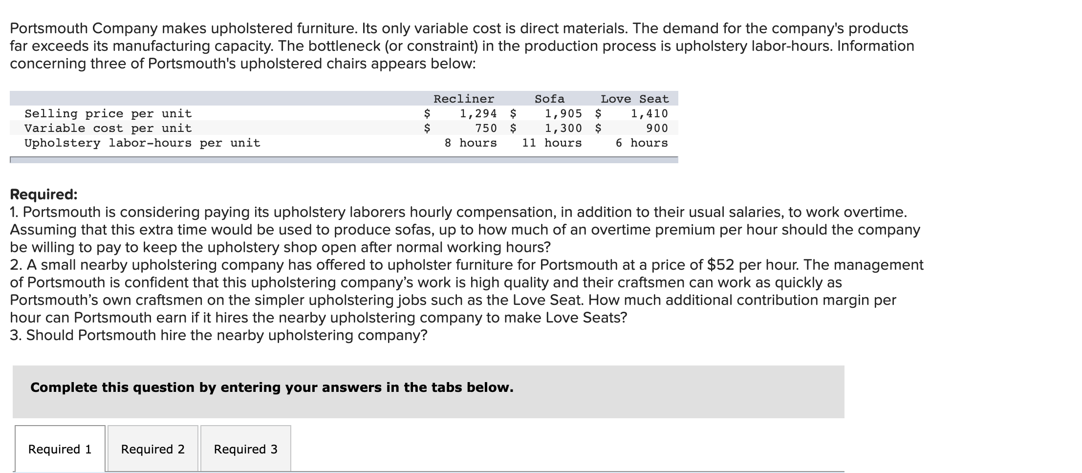 Solved Portsmouth Company makes upholstered furniture. Its