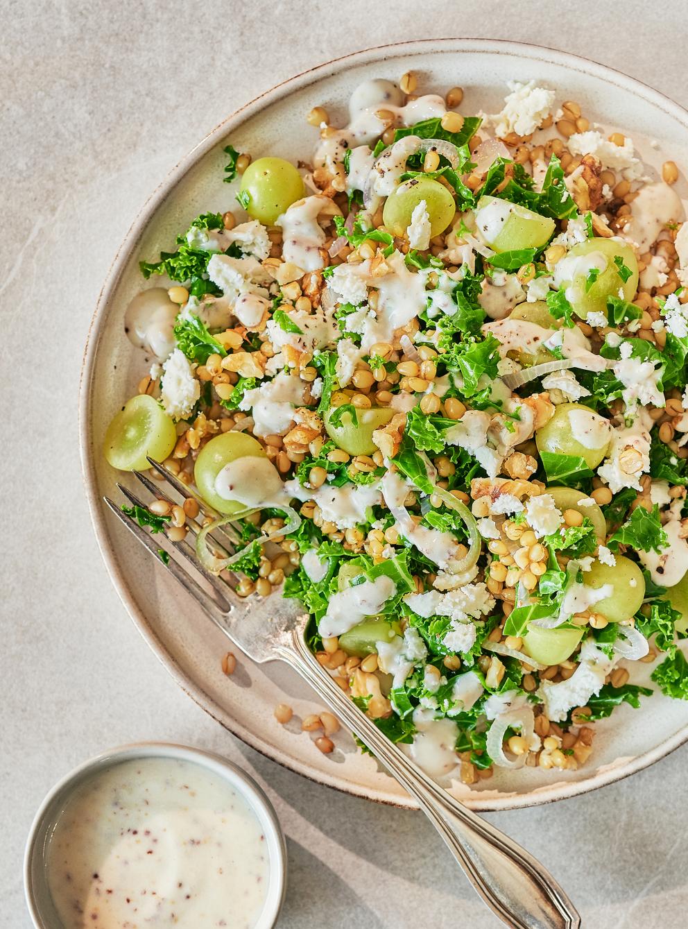 Salade de blé au kale et aux raisins, vinaigrette au yogourt grec RICARDO