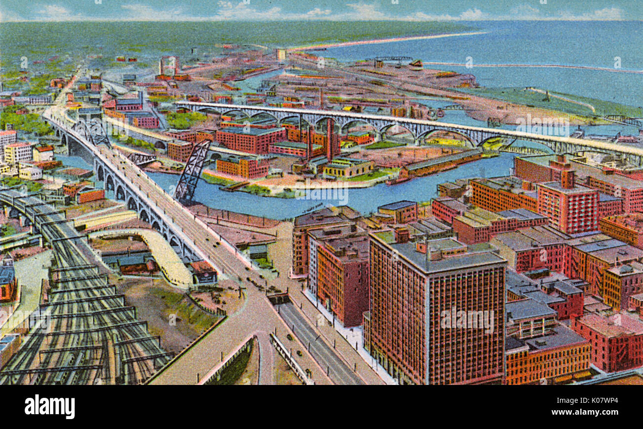 Cleveland, Ohio, USA, High Level Bridge & Main Avenue Bridge Stock