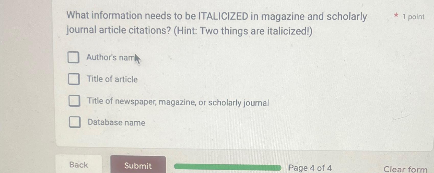Solved What information needs to be ITALICIZED in magazine