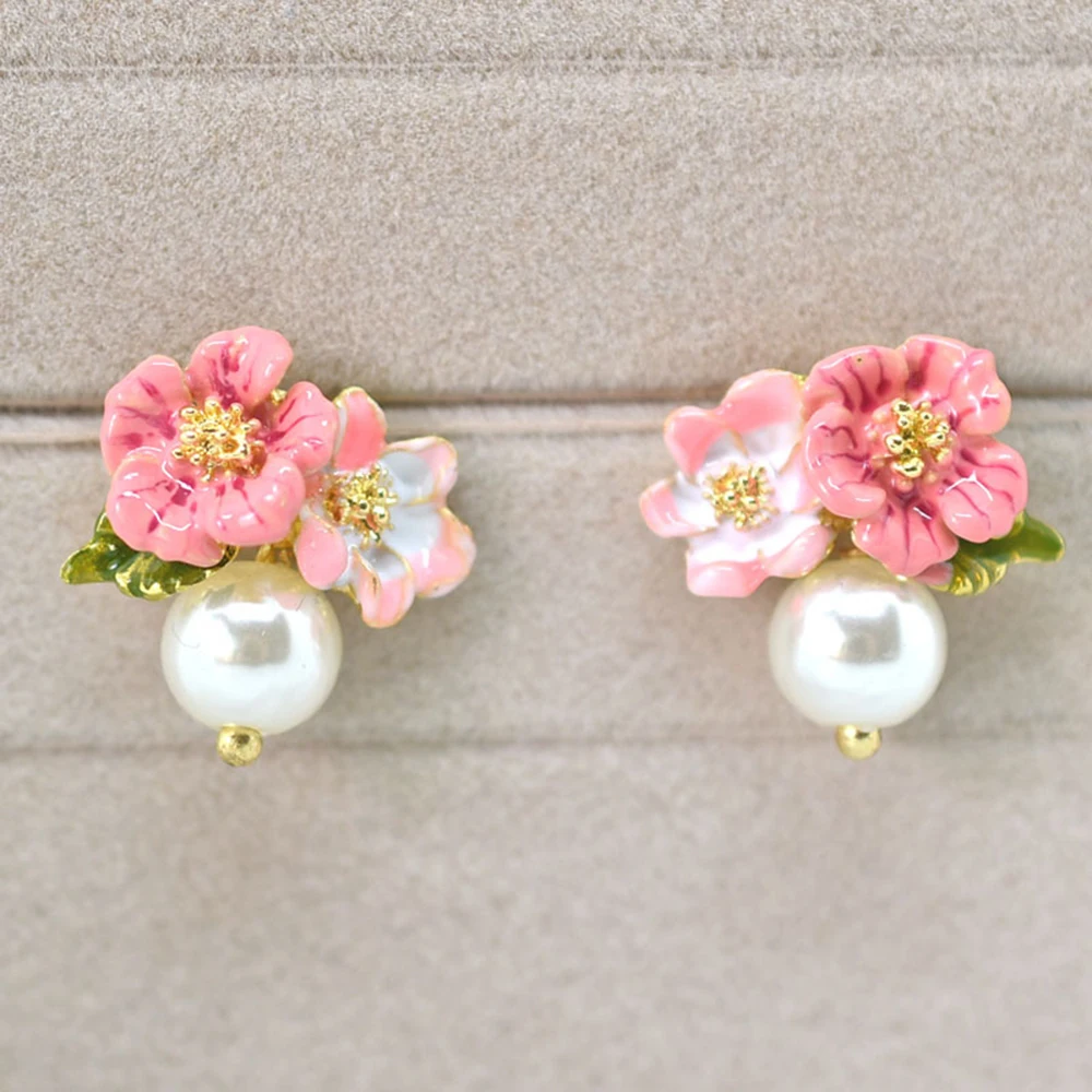 Fashion Pearl Floral Ear Stud Earrings Charm Jewery Colour Dripping