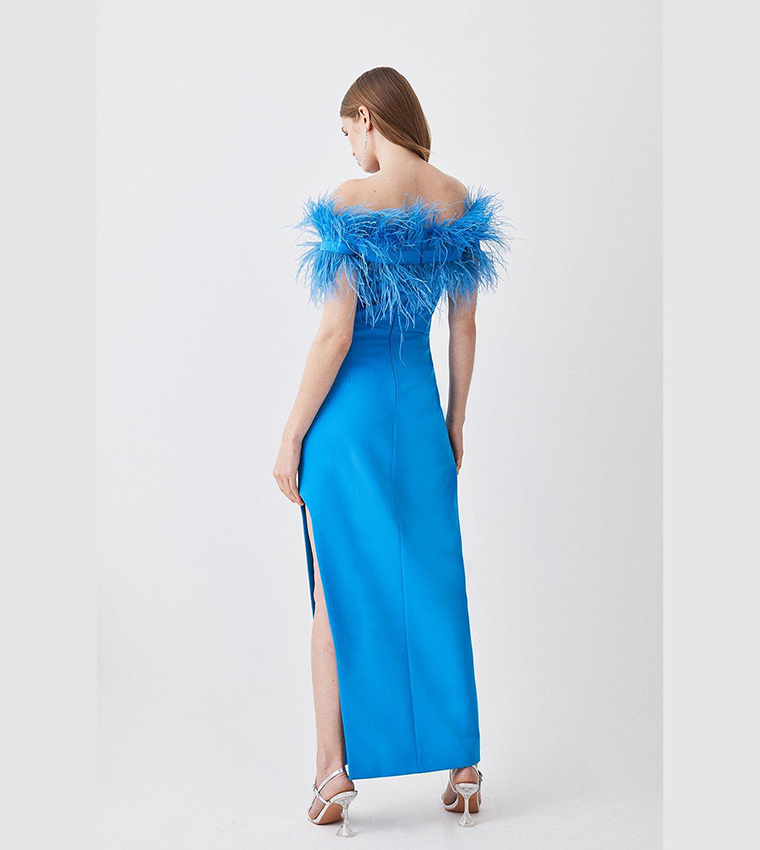 Buy Karen Millen Feather Bardot Stretch Crepe Maxi Dress In Blue