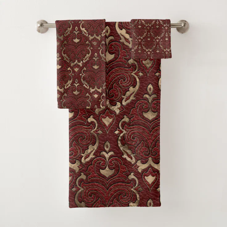 Oriental Pattern Red Leather and gold Bath Towel Set Zazzle Red And Gold Bathroom Towels Soak in the luxury of soft bathroom towels from next. In plain and patterned designs, our range lends a vibrant look to your bathroom. From classic neutral palettes to pops of bright colour to match with your. Add a touch of luxury to your bathroom with our range of towels. Make bath time more pleasurable by stocking up on red. Red And Gold Bathroom Towels.