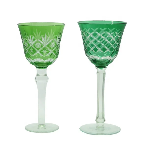 Hot Selling Japanese Cased Glass Green Wine Cup With Hand Carved