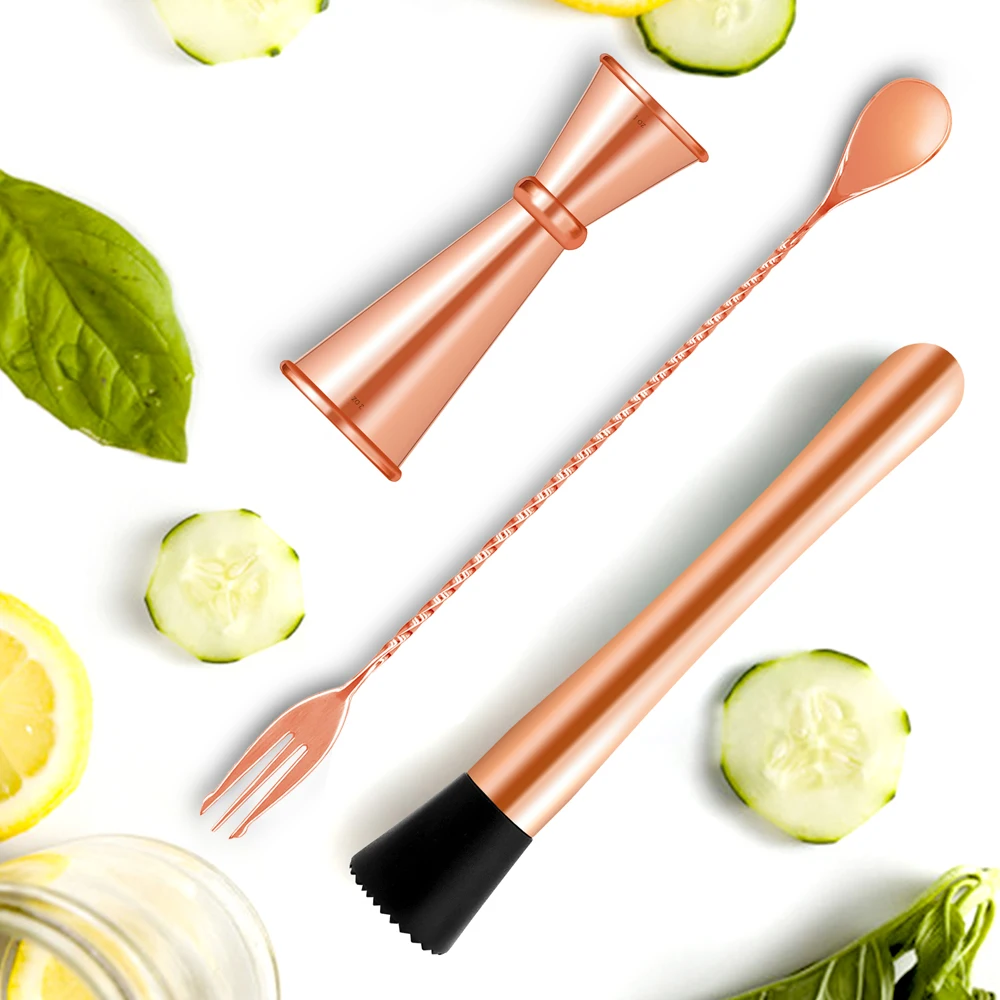 8" Cocktail Muddler and 12" Mixing Spoon and 1oz/2oz Cocktail Jigger