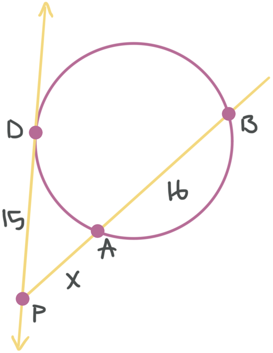Intersecting tangents and secants of circles, intersecting inside the