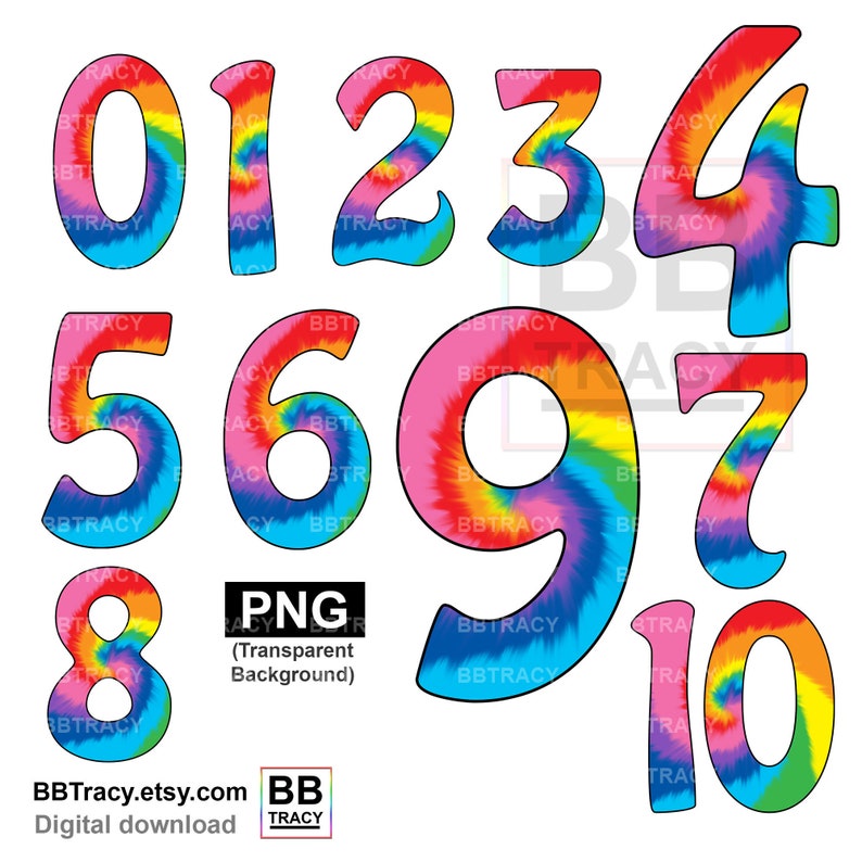 Numbers Digital Clip Art Numbers 0-9 Colorful PNG Files 300 - Etsy
