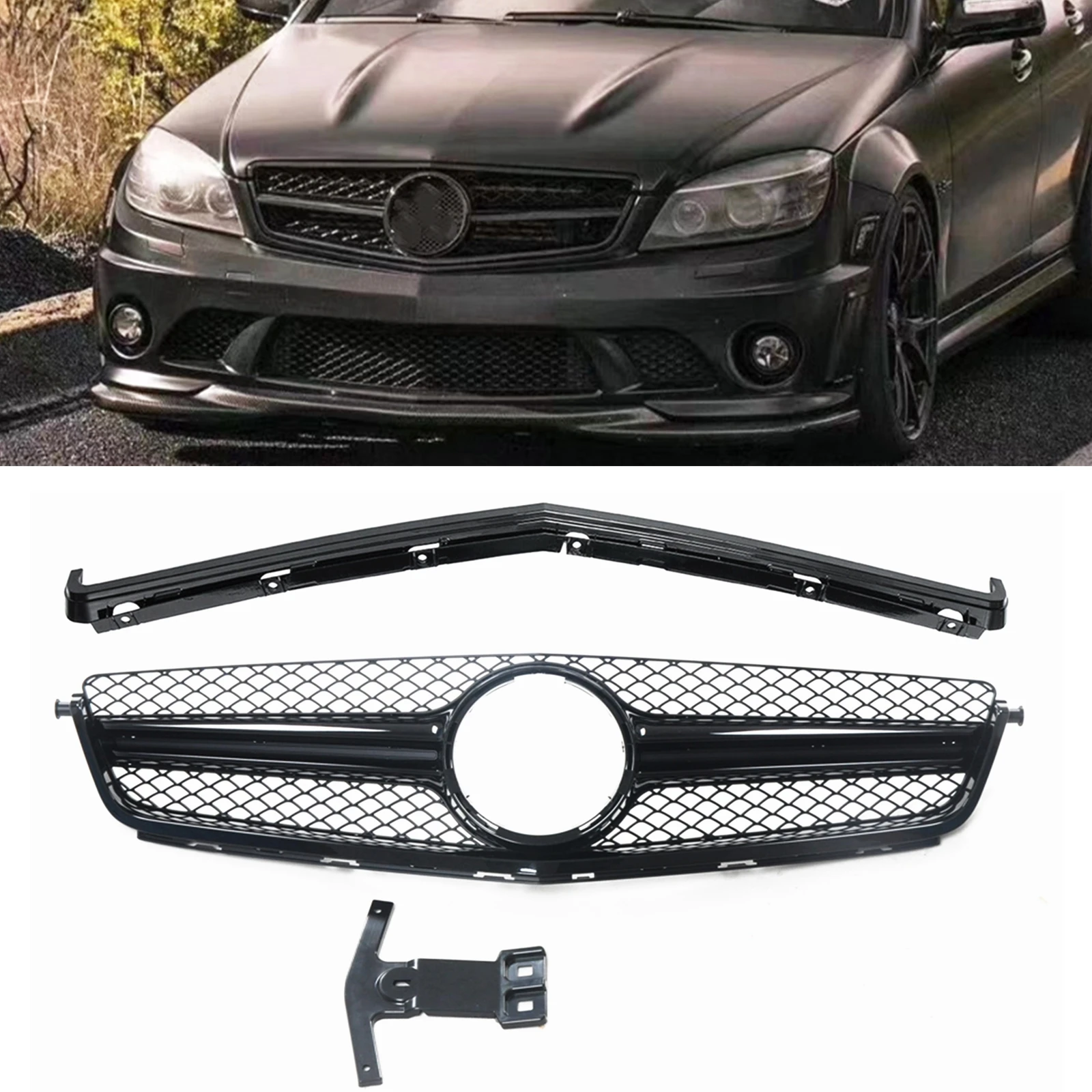 Car Front Grille Grill With Frame Trim Upper Bumper Hood Mesh For Mercedes Benz W204 CClass C63 Car Front Grille Or Grill a car grille cools the radiator and engine by allowing air to flow freely underneath the hood while keeping the vehicle’s internal components protected from road debris. the grille covers the area opening in the front of a car body to allow air to enter or exit. grille, which is only a noun, usually refers to a. Car Front Grille Or Grill.