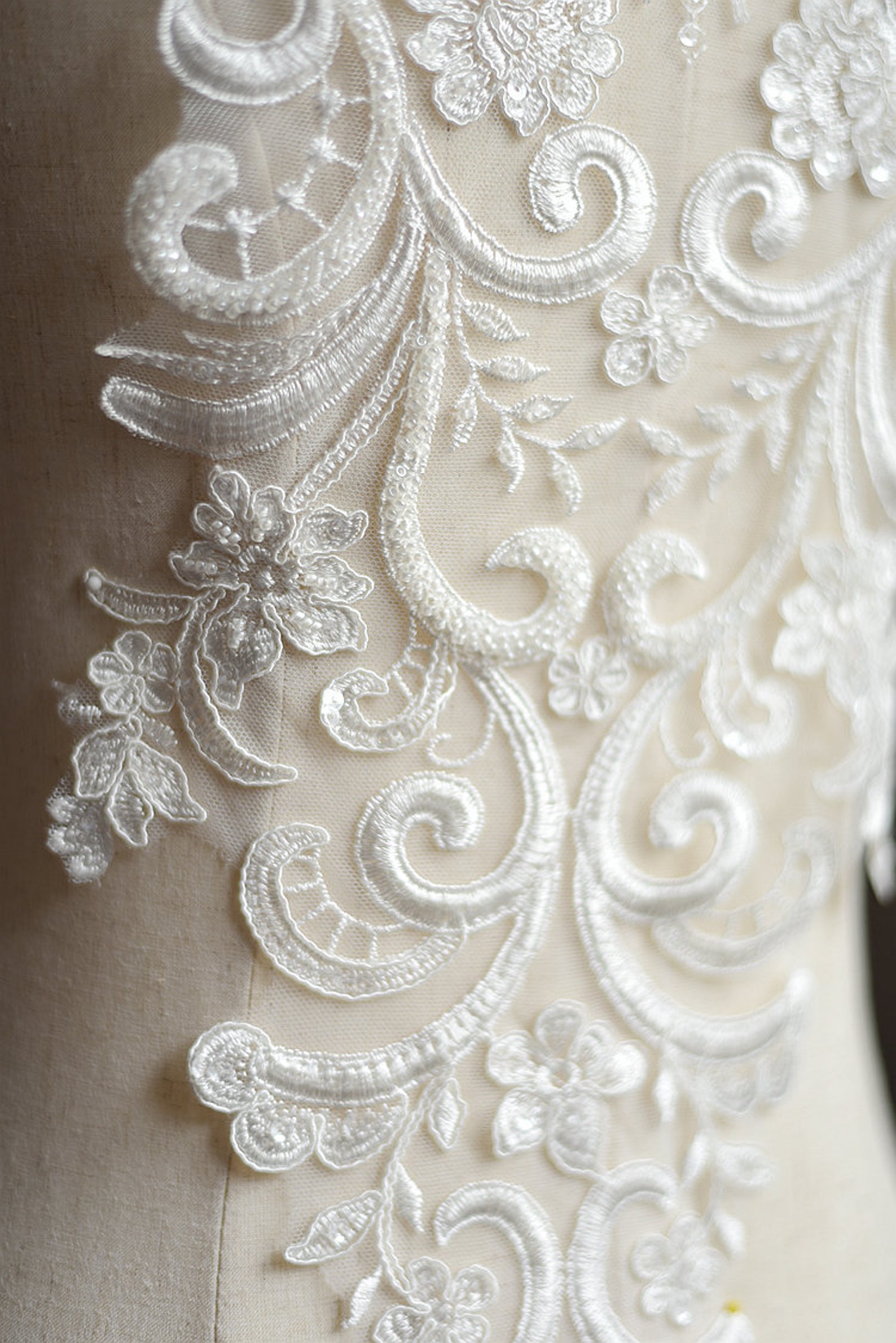Beaded Embroidery Lace Flower Lace Wedding Dress DIY Etsy