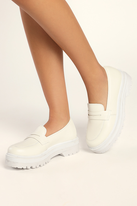 Chic White Loafers Flatform Loafers Faux Leather Shoes Lulus