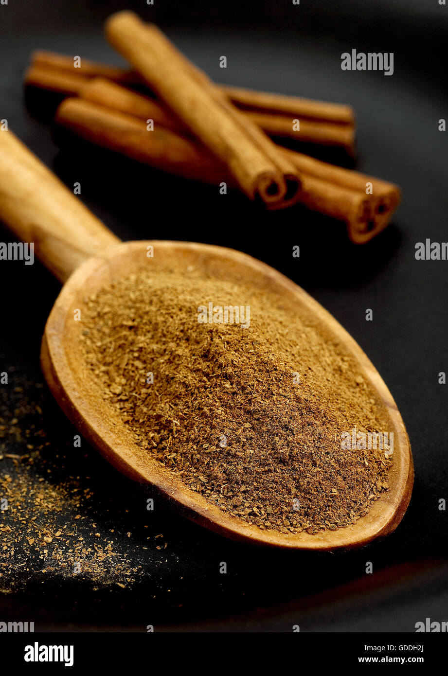 Cinnamon Bark and Powder, cinnamomum zeylanicum against Black
