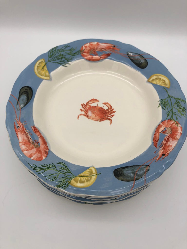 Belleîle by Gien France Seafood Plates, 9 Soup Plates For Sale at 1stDibs