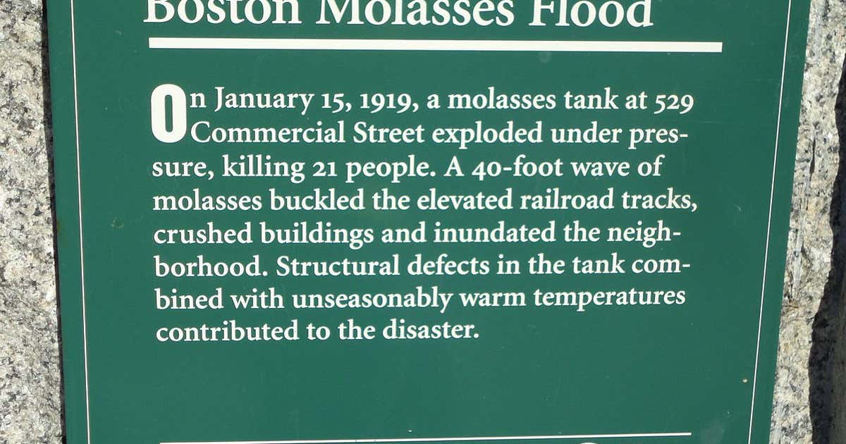 The boston molasses disaster, also known as the great molasses flood, occurred on january 15, 1919, in boston’s north end. A steel tank holding 2.3 million gallons of molasses burst open and quickly collapsed, sending a deadly and inescapable tidal wave of. The smell of molasses lingered for decades. A large molasses storage tank at the purity distilling company burst and a large wave of molasses rushed through the. 15, killing 21 people and injuring roughly 150 others,. The molasses flooded streets, crushed buildings and trapped horses in an event that ultimately killed 21 people and injured 150 more. Not long after the massive tank of molasses ruptured in the north end on jan. The disaster occurred on an unusually warm day at the purity distilling company. See the aftermath of the great boston molasses flood of 1919 through the eyes of photographer leslie jones, including photos of the. The great molasses flood occurred on january 15, 1919, in the north end of boston.