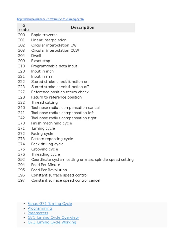 Fanuc GCode List Helman CNC Numerical Control Drilling Fanuc Cnc Lathe G And M Codes in this blog post, an experienced mechanical engineer shares insider tips and techniques for mastering. Below you will find a list of common codes many builders use. Standard basic turning codes are hugely. m code/g code list. Please remember, all machines may be. Fanuc Cnc Lathe G And M Codes.