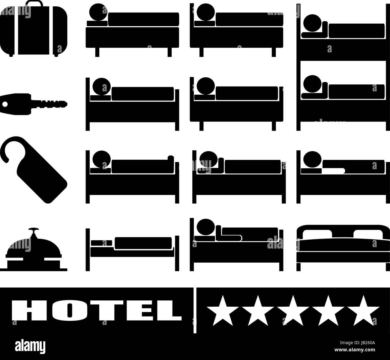 Collection of hotel icons, many bed signs, vector symbols Stock Vector How Much Bed In Hotel The following are the bed sizes you’ll likely meet in the hotel during your stay: Approximately 60 inches (or about 152.5 cm) length: 4.5/5 (173k) When it comes to hotel beds, understanding the dimensions is crucial for both comfort and space utilization. If you’re short on time, here’s a quick answer to your question: Many types of beds are. How Much Bed In Hotel.