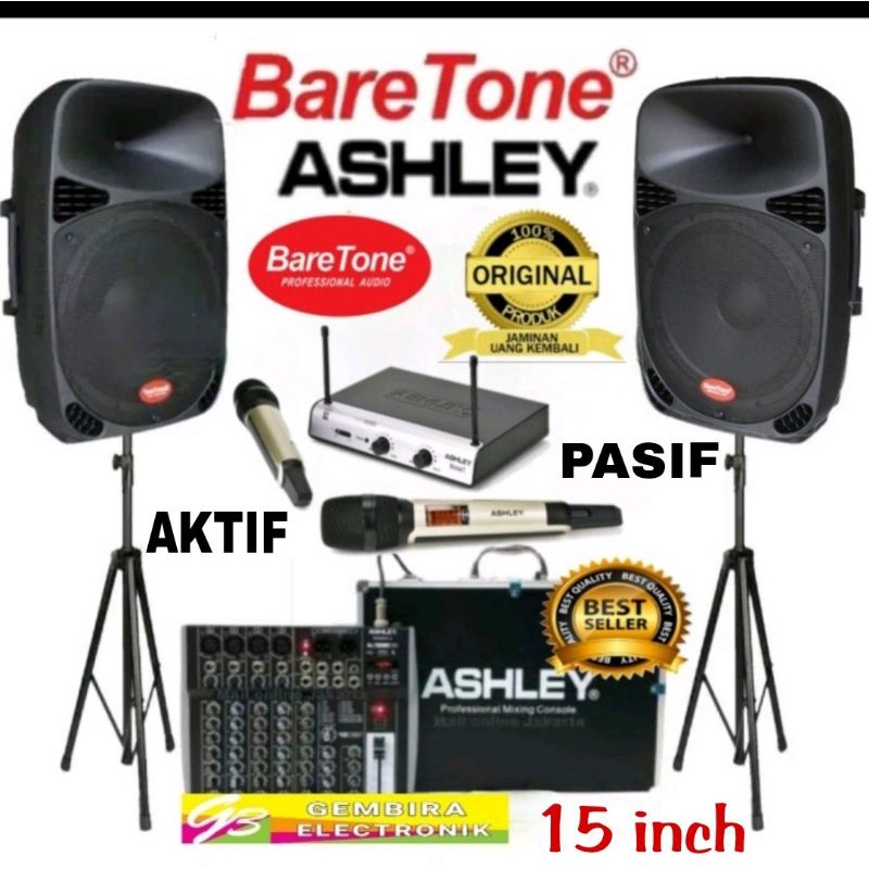 Jual Paket Speaker Aktif Pasif Baretone 15 inch Mixer Ashley Original Sound System Indonesia