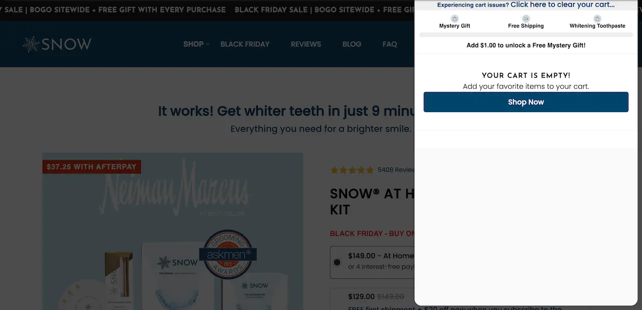 Snow Black Friday Shopping Cart Example ConvertFlow