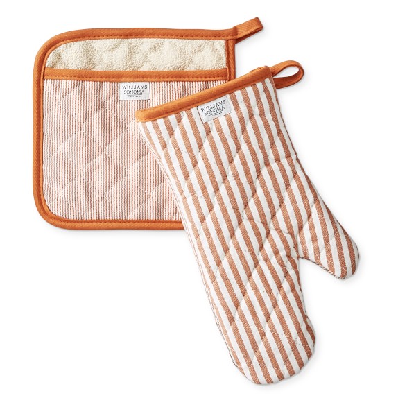 Williams Sonoma Bay Stripe Oven Mitt & Pot Holder Set Pumpkin Orange