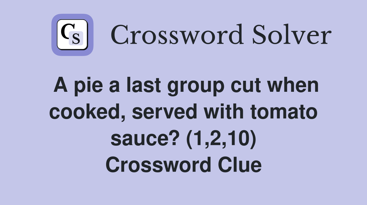 A pie a last group cut when cooked, served with tomato sauce? (1,2,10 With Sauce Crossword Clue We solved the clue 'with sauce ' which last appeared on june 11, 2022 in a n.y.t crossword puzzle and had ten letters. Insolently (10 letters) below, you’ll find any keyword(s). Here is the answer for the crossword clue with sauce last seen in new york times puzzle. The solution to the with sauce crossword clue should be: The crossword. With Sauce Crossword Clue.