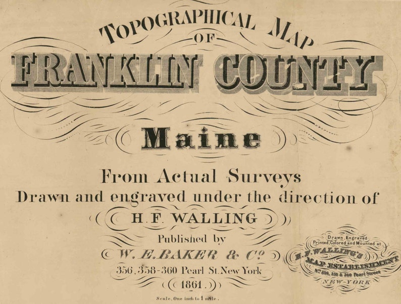 Franklin County Maine 1861 Old Wall Map Reprint With Etsy