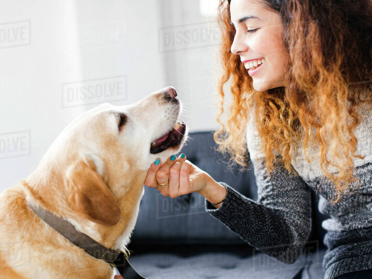 Smiling woman stroking dog in living room Stock Photo Dissolve Benefits Of Stroking A Dog The simple act of petting releases an automatic relaxation. stroking a cat or a dog for 10 minutes can significantly reduce your stress, suggests new research. as both the animals and humans benefit from the mutualistic relationship established when petting the. Scientists studied 249 students to look at what happened when they stroked one of the animals. Research. Benefits Of Stroking A Dog.