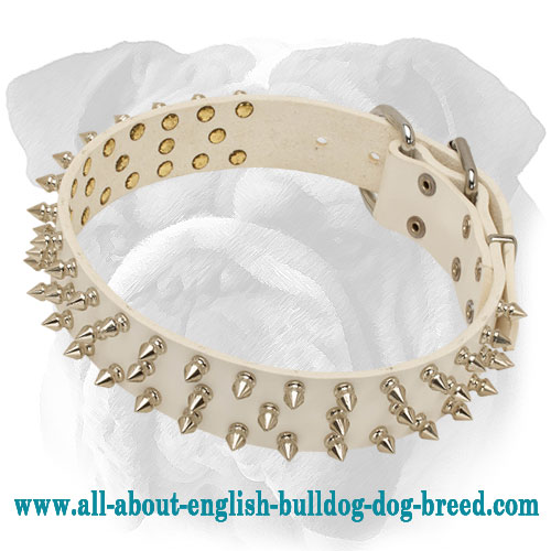 Shop Spiked Dog Collar for Bulldogs S44 Exclusive Supplies on FDT Best Collar For English Bulldog In this post, we’ll explore the best collars for bulldogs and explain why they work so well. Best collars for bulldogs 1. 5 best english bulldog harnesses. Most harnesses are not safe for cars; How to choose a harness for an english bulldog. The best collars for your english bulldog are those that fit perfectly and meet its intended objective.. Best Collar For English Bulldog.