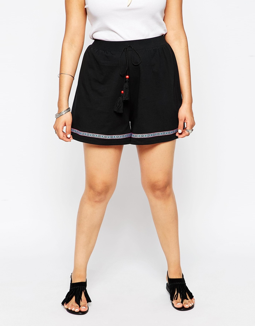Asos curve Drawstring Shorts With Aztec Tape in Black Lyst