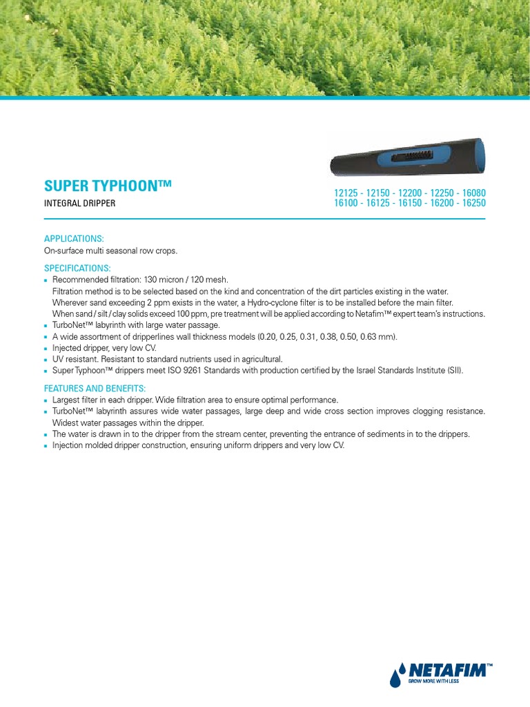 Specification Sheet for Netafim Super Typhoon Drip Irrigation System