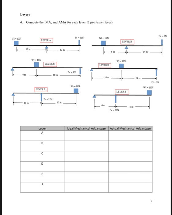 Solved Levers 4. Compute the IMA, and AMA for each lever (2
