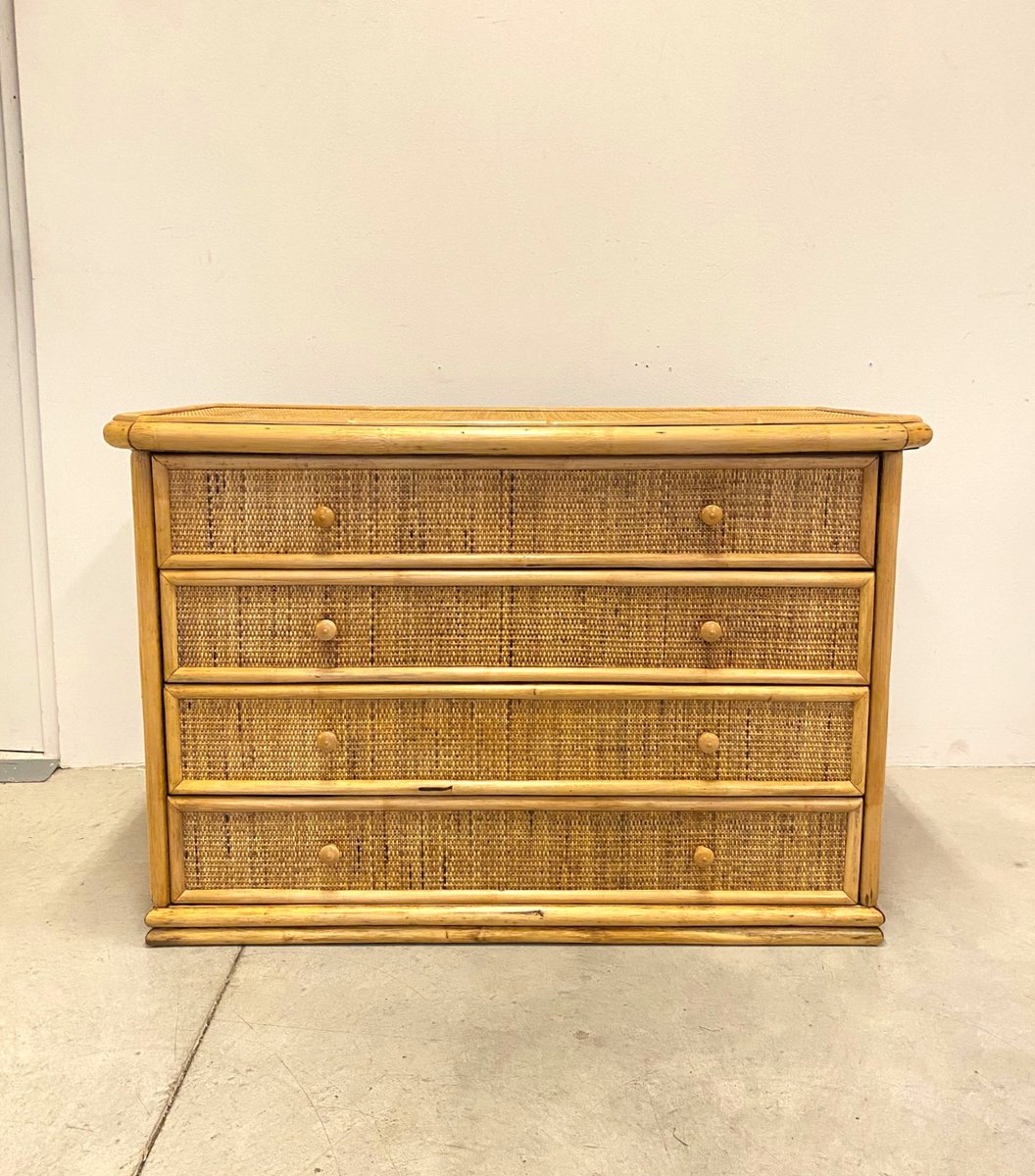 Vintage Bamboo & Rattan Chest of Drawers, 1970s for sale at Pamono