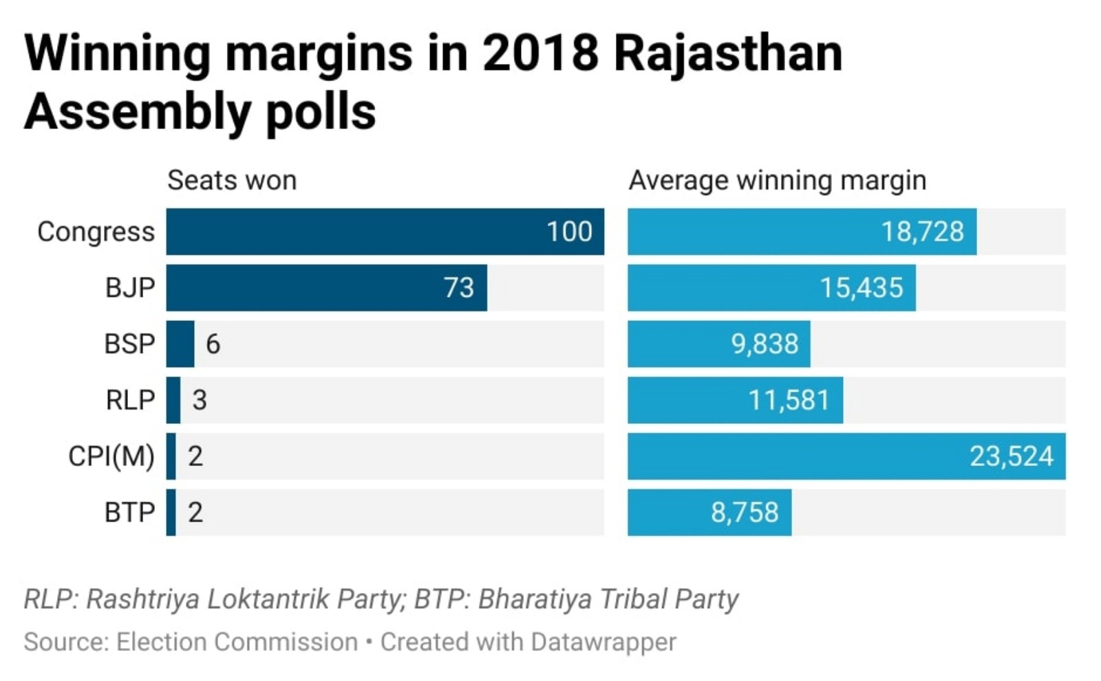 In 2018 Rajasthan, Congress won by much higher margins than BJP, swept How Many Seats Congress Won In Rajasthan 2018 When the congress returned to power in rajasthan in the 2018 assembly elections, it had 27 mlas more than the bjp’s 73. 235 rows legislative assembly elections were held in the indian state of rajasthan on 7 december 2018. The indian national congress (inc) emerged as the single largest party in rajasthan, winning 99 seats in the 2018 rajasthan. Of. How Many Seats Congress Won In Rajasthan 2018.