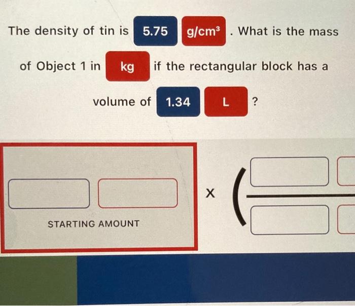 Solved The density of tin is 5.75 g/cm . What is the mass of