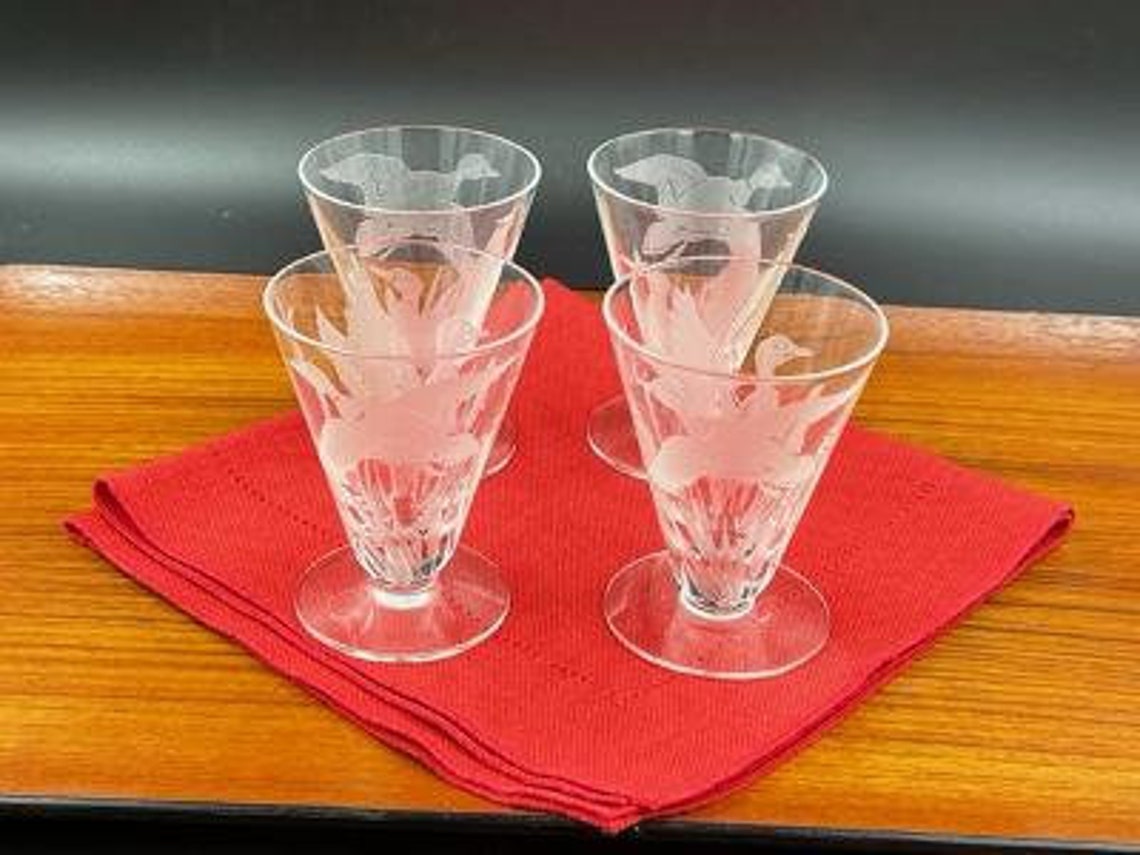 Vintage Etched Footed Cocktail Glasses Set of 4 Ducks in Etsy