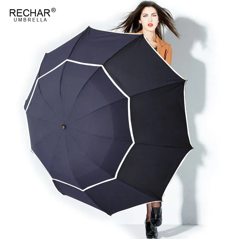 RECHAR Brand Double Umbrella Rain Women Windproof 3Floding Large Male